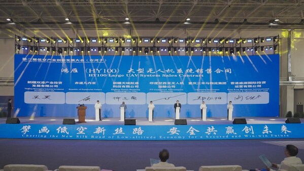 SHIHEZI, China, Sept. 2, 2025 /PRNewswire/ — On August 29, 2025, the second Low-Altitude Industry Innovation and Development Conference was successfully held in Shihezi City, Xinjiang, China. During the conference, China’s Ursa Aeronautical Technology Co., Ltd. (“Ursa”) reached a procurement agreement with Indonesia’s PT Unmanned Airtransport Indonesia for 20 sets of HY100 Unmanned Aircraft Systems (UASs). Additionally, the company signed a procurement agreement with the government of the Republic of Equatorial Guinea for 10 sets of the systems, and established strategic service partnerships with Kazakhstan in various fields, including logistics, agricultural and forestry plant protection, and tourism development. This marks the official entry of China’s large civil UASs into the international market, providing advanced low-altitude intelligent solutions for countries along the “Belt and Road” initiative.