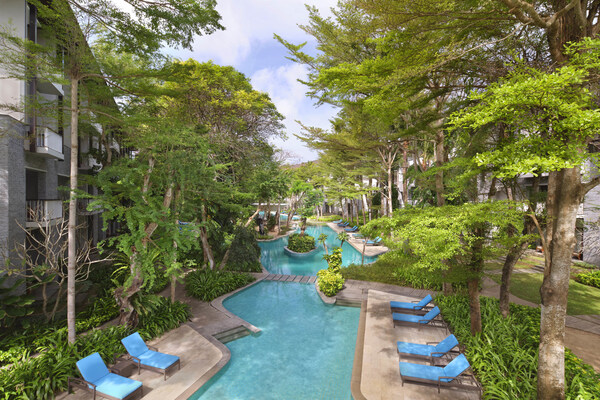 The 97-meter lagoon pool at Courtyard by Marriott Bali Nusa Dua Resort offers the perfect setting to unwind and embrace tropical serenity.