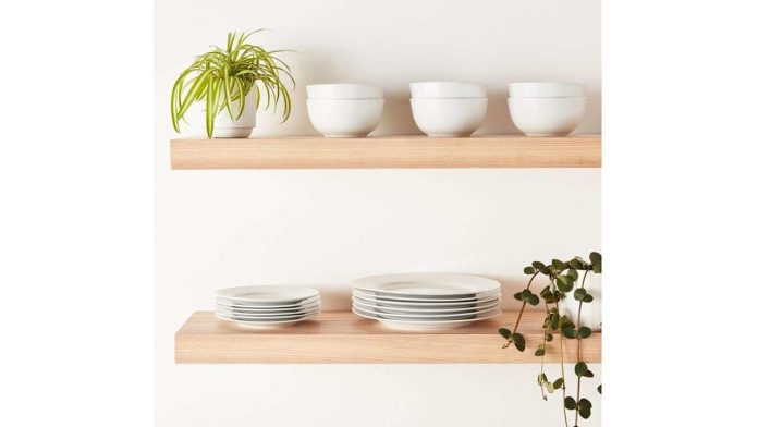 She included a peek of her own shelves, which, as a surprise to no one, look impossibly stylish, clean and not in the slightest bit fussy. Of course, Ina’s most basic dinnerware probably costs more than one of my mortgage payments, so I went in search of similar pieces — all for under $50. In the words of the kitchen queen herself, “How bad can that be?”