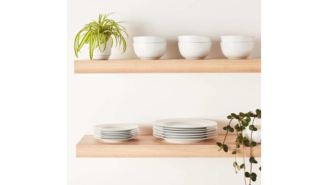 True to her word, the photos show her shelves full of white dishware, similar to this popular set, which costs a mere $44 and includes dinner plates, dessert plates and bowls for six. Now your culinary creations can really shine.