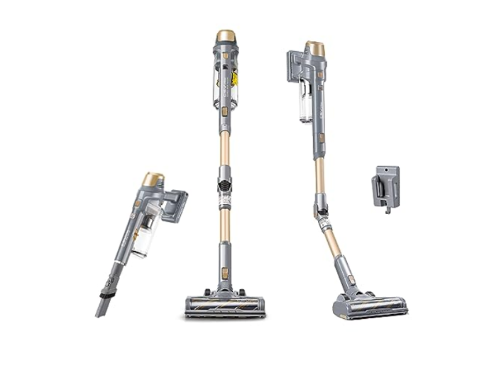 Granero further noted that this pick earned the nickname “Tinker Bell” during testing for its quickness and those glowing lights. “It was easy to set up — three main parts, three clicks — and can be charged in the wall mount dock or plugged right into an outlet,” she added. “It contains a HEPA filter for capturing 99.97% of pixie (er, dust) particles and features an LCD display that illuminates different colors to indicate charge level and motor speed. You use the switch to start and stop, and can toggle between modes via the button on top (no need to keep holding).” Take that, Dyson!
