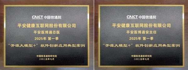 Ping An Healthcare and Technology Company Limited‘s (“the Company”, Stock Code: 1833.HK) two medical AI products, “Ping An Xin Yi” AI Doctor and “Dr. An,” received prestigious recognition. They were successfully selected as “Featured Cases” in CAICT’s first batch of “Open-Source Large Language Models+” Software Innovation Application Typical Cases. This achievement is attributed to their closed-loop service capabilities, integrating data, models, and real-world scenarios, as well as their technological breakthroughs that overcome the traditional trade-offs between speed, quality, and cost. Furthermore, they passed the quality and efficiency assessment for open-source large language model integration and application capabilities, establishing them as benchmarks for AI technology empowerment in the healthcare sector.