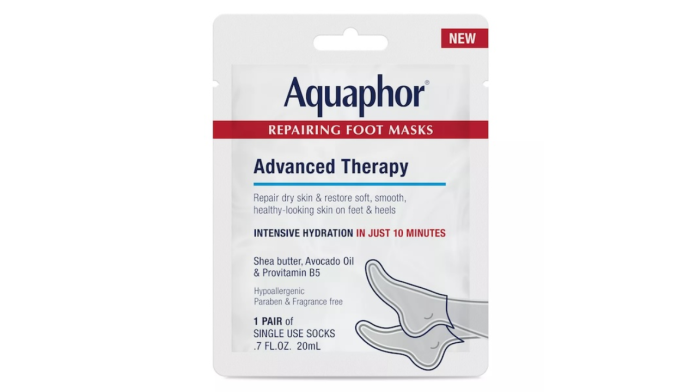 Of course, there is another alternative that’s slightly cheaper, albeit a little messier: You can just apply regular Aquaphor ointment to your feet and put on a pair of socks. In a pinch, I’ve done this or even used Vaseline instead. While the regular Aquaphor doesn’t have the shea butter and it’s a little greasy feeling, it’s still meant for dry, cracked skin and can beautify your feet.